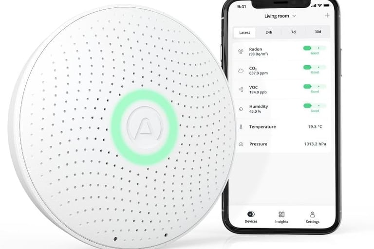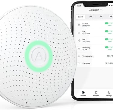 That’s where the Airthings View Plus Air Quality Monitor changes things. Instead of a one-time test, it continuously tracks radon, CO₂, VOCs, and particulate matter—giving you a clear, ongoing picture of your environment.